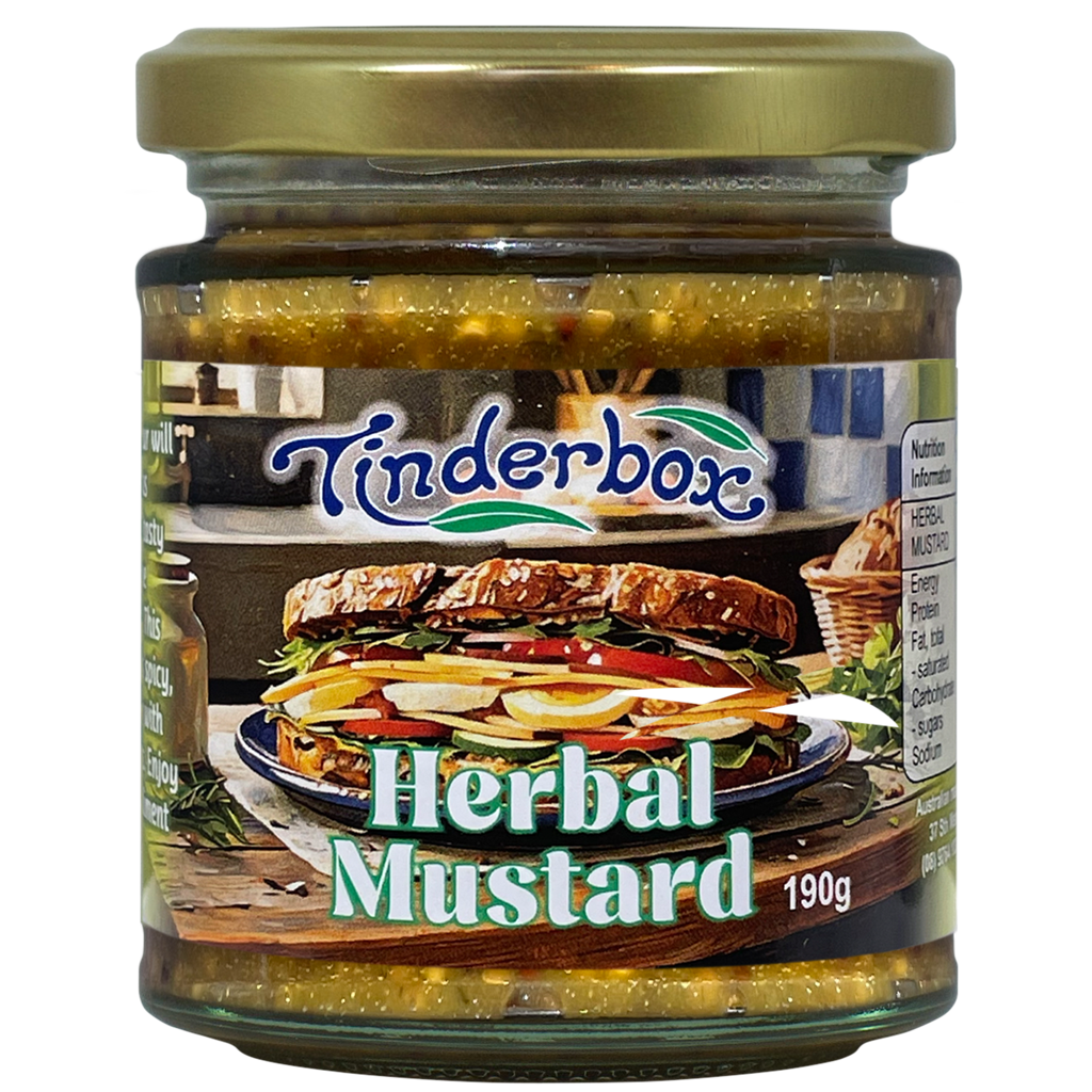 The mustard connoisseur will appreciate this delicious cross between the grainier, tasty French mustard and the hotter English variety. Tinderbox mustard is hot, spicy and rich in flavour. We combine the best natural ingredients in this magical blend. Use on your favourite sandwich, Christmas centrepiece or experiment with a savoury bread and butter pudding!
